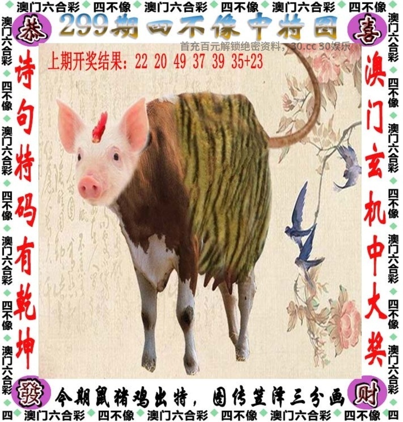 | 296期:今期羊狗猪出特,高卧洞庭三十春 ①杀:牛鸡龙 ③合双+大数 |